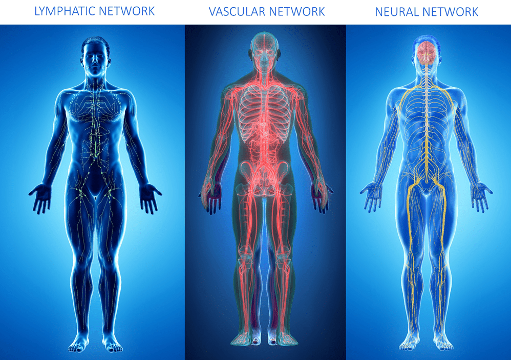 The neural network can also transport nanoparticles over short distances, and the Olfactory nerve system transfers hormones directly to the Thalamus, bypassing the blood brain barrier.