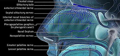 In Tantra the couple will have their noses close to each other, and subtly inhale the other’s exhalation, compressing the pharynx with the tongue, and inhaling slowly. This allows time for the Septal olfactory nerves to collect the hormones directly to the Olfactory Bulb that resides within the brain itself, wrapped around the Thalamus. This is a powerful hit and an important element in the Tantric practise.
